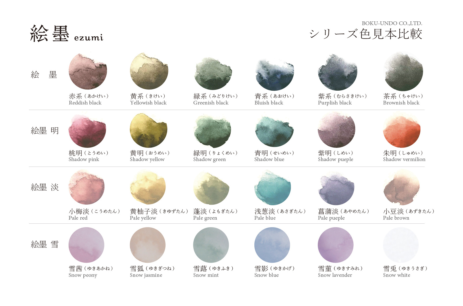 「絵墨 淡」は墨づくりの技術から生まれた墨をベースにつくられた墨運堂独自の絵具です。